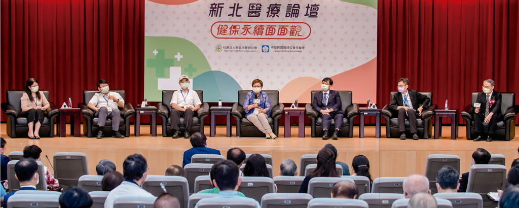 新北市醫師公會舉行「健保永續面面觀」醫療論壇,新北市醫師公會理事長顏鴻順(右1)和與會的學者專家探討健保永續經營的問題,本刊創辦人黃秀玲教授(中)亦應邀出席。