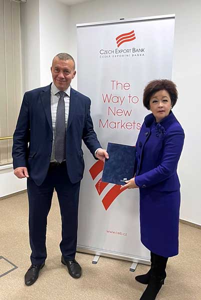 為加強輸出入銀行與捷克The Czech Export Bank合作關係,以促進臺捷雙邊經貿發展,雙方業於11月14日假The Czech Export Bank總行簽署合作備忘錄(MOU),由輸出入銀行理事主席劉佩真與The Czech Export Bank董事長Mr.Daniel Krumpolc共同簽署,並由輸銀財務部陳煥銘經理及捷克布拉格代表人辦事處張珮瑩主任等見證簽約儀式;雙方就交換商業訊息與知識交流等之互惠模式達成共識,以提升雙邊銀行業務之經營效能與客戶服務之競爭力,咸信此合作共識之建立,可加強雙方合作關係,並有助我國廠商開拓捷克市場。