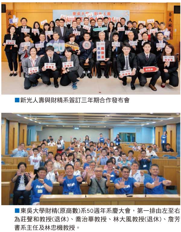 與產業轉型新浪潮 隨著金融科技的發展及產業數位轉型,大數據分析、人工智慧及金融保險資訊分析的人才需求大增,「財務工程」與「精算數學」的人才必須以數理優勢及財務與精算專業為基礎,具備大數據分析工具的決策能力。財精系從「課程革新」、「資源導入」及「人才實習」三個面向進行教學與研究的升級。例如,必修6學分的高等微積分(全)調整為必修三學分高等微積分(一)及選修三學分高等微積分(二),釋出選課彈性以區隔學生興趣;調整資訊程式能力相關課程,以Python程式語言為基礎、增加人工智能、金融大數據等課程;高等統計學加入R軟體實作;保險數學導論外,新增保險專題課程,提升學生設計及實作保單的能力;規劃多項課程以符合美國精算學會VEE課程模組的認證。財精系更與南山人壽、新光人壽、全球人壽、國泰人壽、安達人壽及明台產險等公司合作,成立精算大數據研究中心,提升師生研究能量,將研發成果與業界實務需求結合,提供高額獎學金及引導優秀學生透過實習直接進入職場,落實學用合一的教育目標。