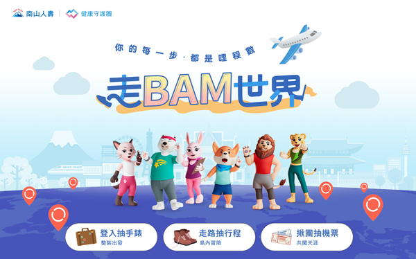 南山人壽「走BAM世界」挑戰賽,活動期間自2023年6月10日至8月6日止,只要下載BAM APP、完成線上挑戰賽報名,並於活動期間內完成指定任務,即可參加抽獎。活動詳情請搜尋「走BAM世界」活動網站:https://bit.ly/3WQZDKc