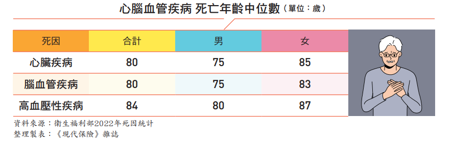 因此,除了優先規劃實支實付醫療險和住院醫療險保障,若預算充足,可增加含有心腦血管疾病的「重大疾病險」或「特定傷病險」。