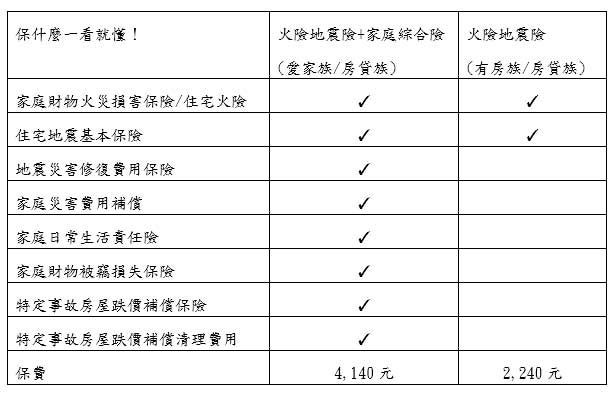 表:「美滿e家專案」與「住宅火災及地震基本保險」差異比較