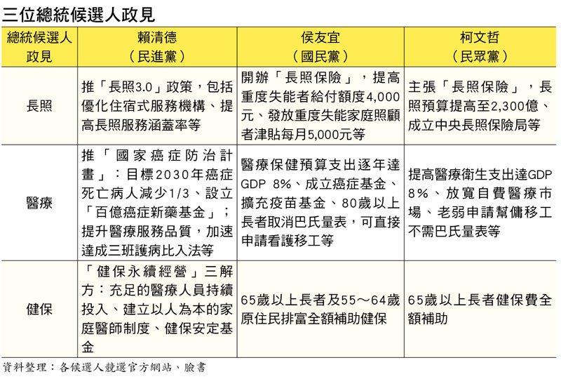 由此可見,民眾在長照、醫療方面的需求與期待。而三組候選人提出的政見,是否足以回應民眾需求?