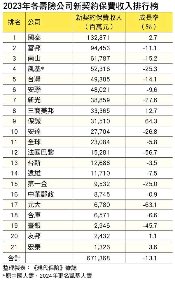 2023壽險FYP出爐!僅1家壽險挺住千億元大關