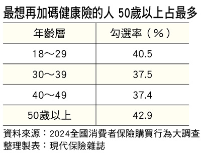 健康險逆勢成長 50歲以上中高齡族群最願意加碼!