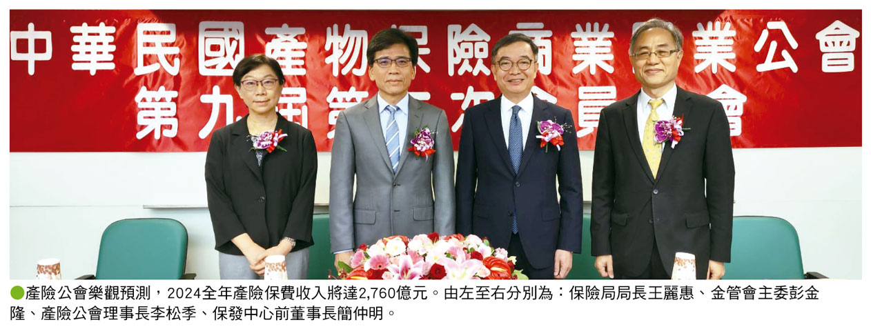 產險公會李松季理事長預估,二○二四年全年簽單保費有望達到二七六○億元,也就是台灣產險業有望在短短五年間,從二○一九年的一七六○億元飛躍成長至二○二四年的二七六○億元,五年間增加近一千億元的簽單保費收入。