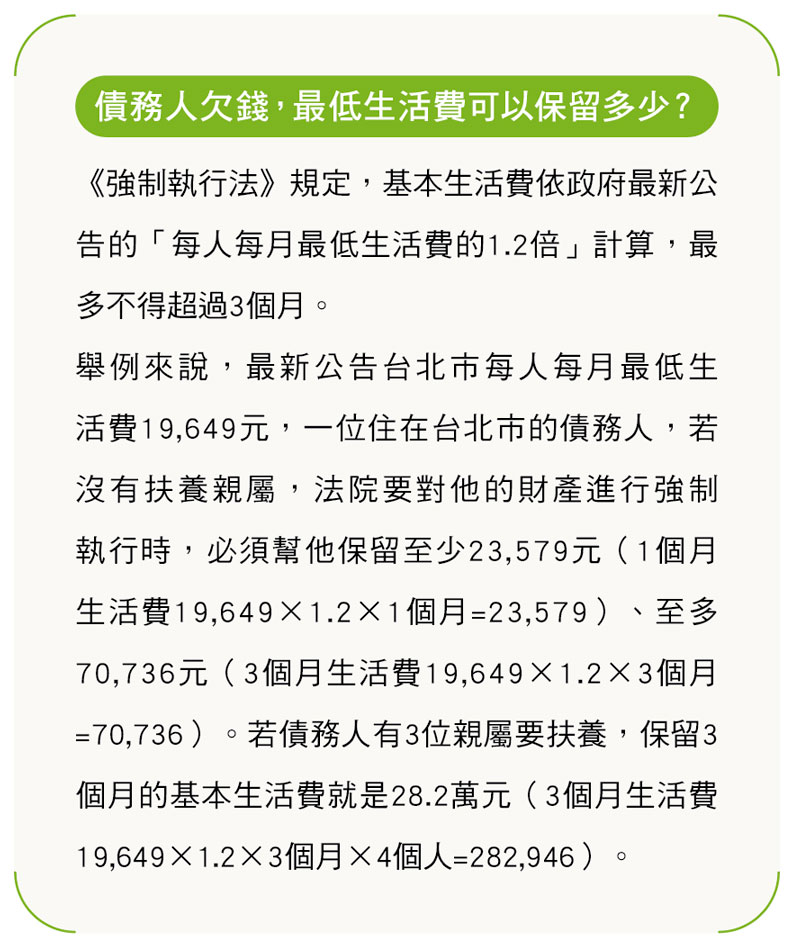 葉啟洲說,若真要談「棺材本」,《強制執行法》已有「債務人及其共同生活親屬的基本生活費,不能成為強制執行標的」的規定,可以保障人民的基本生活需求。