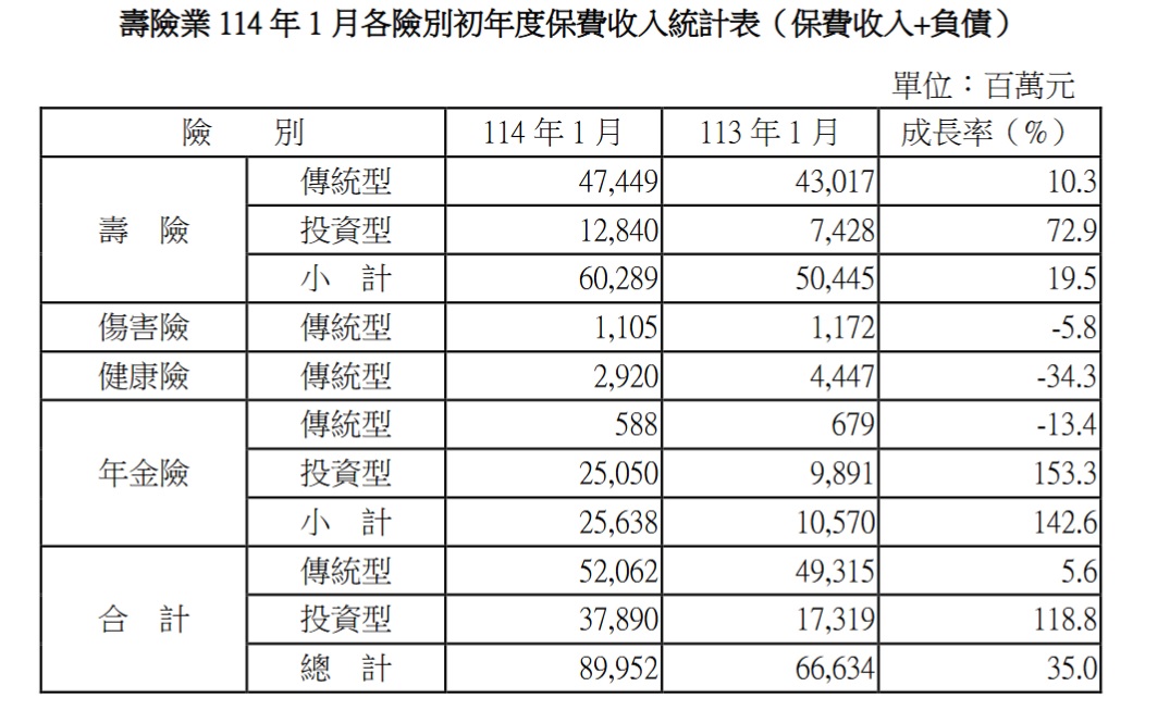 主要受惠於國內外股市維持多頭走勢,民眾對於投資市場持樂觀態度,連帶提升投資型保單銷售動能。2025年1月的投資型商品保費收入達378.9億元,其中,投資型年金FYP達250.5億元,較去年同期的98.9億元,大幅成長153.3%,除了帶動投資型商品整體的FYP,也讓年金險FYP出現顯著成長。