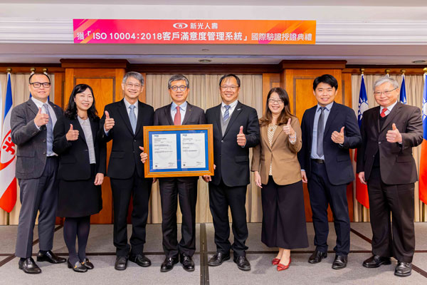 「ISO 10004客戶滿意度管理系統」制定完善的客戶滿意度監測指南,為國際上具公信力的顧客服務管理系統,可幫助企業建立有效的系統監測、提升服務作業流程並增進客戶滿意度。授證典禮於2月19日於新光摩天大樓舉行,由新光人壽總經理黃敏義及獨立董事何弘能共同出席見證,並由全球知名第三方驗證機構「立恩威國際驗證股份有限公司 (DNV Business Assurance Co., Ltd.)」總經理謝振瑋頒發「ISO 10004客戶滿意度管理系統」證書,肯定新光人壽在客戶滿意度管理上領先業界的卓越表現。