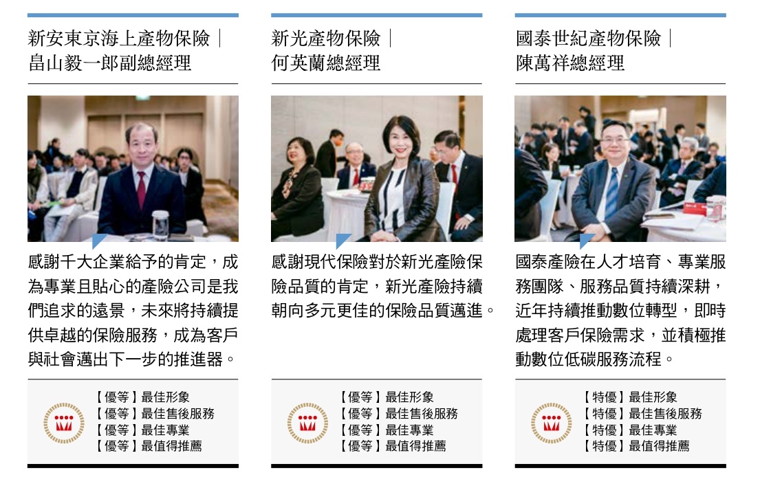 事實上,創刊於民國七十八年的《現代保險》雜誌,長期致力於數據分析與產業發展趨勢的追蹤,民國八十二年就洞燭機先,進行第一個全國性壽險問卷調查,民國九十年,更進一步以千大企業為對象,進行產險購買行為與滿意度調查。而【保險品質獎】的頒發,就是表彰產險公司在一千大市場的耕耘成果,以及消費者對壽險公司與金控公司的高度肯定。