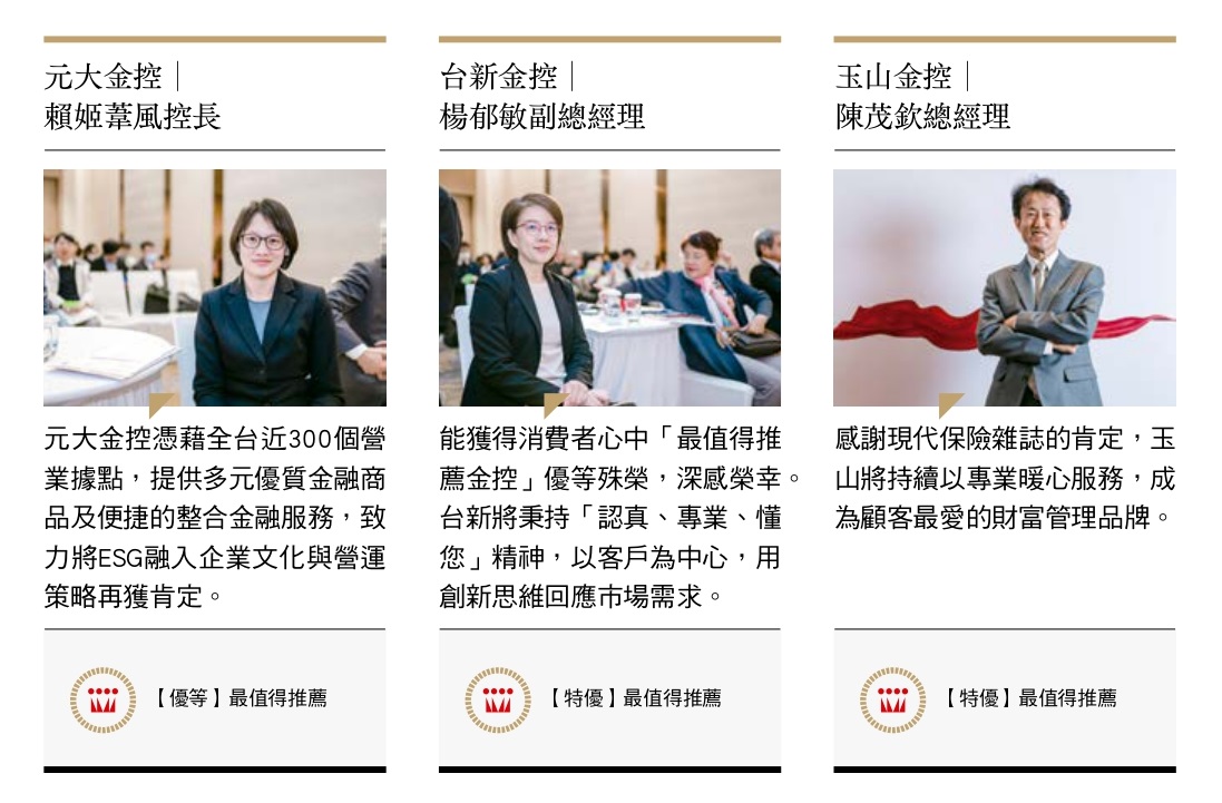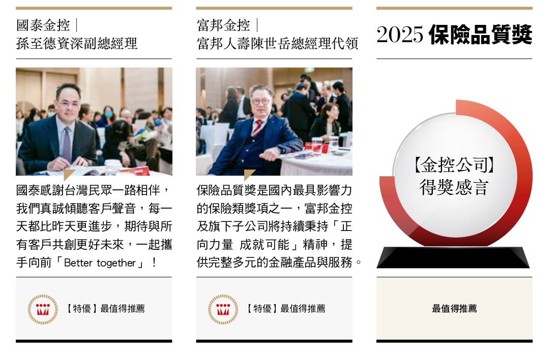 這場由《現代保險》雜誌舉辦的年度盛事,集結了產險、壽險及金控公司領袖與眾多年輕從業人員,現場熱鬧非凡。隨著歡呼聲此起彼落,得獎公司代表從金管會主委彭金隆與《現代保險》雜誌發行人林麗銖手中接過獎座,臉上滿是自豪與期待。現場與會嘉賓如雲,許多年輕的保險從業人員齊呼應援口號,替自己所屬公司喝采!
