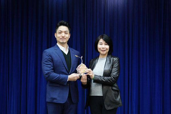 新光產物總經理何英蘭代表領獎,由蔣萬安市長頒獎。
