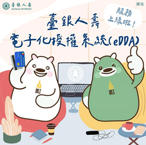 民眾購買保單進行授權扣款時,通常須由申請人填寫紙本授權書,由扣款銀行以人工方式進行核印,約需7-12個工作天日才能完成授權流程,為縮短授權時間,臺銀人壽向票據交換所申請建置電子化授權(eDDA),提供保戶(申請人)經由網路,採電子化之方式進行授權申請或異動,規劃以「插卡」及「免插卡(網銀雙因機制)」兩種操作管道提供eDDA網路線上授權作業,並於114年5月正式上線。
