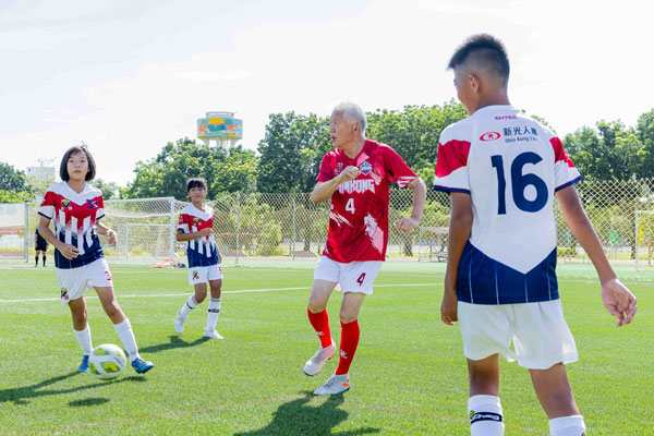 值得一提的是,今年5月甫落幕的台灣「世界壯年運動會」,除了讓世界看到台灣,一群由65歲以上台灣長者組成的Taiwan Team足球代表隊,也代表台灣贏得2025年世界壯年運動會冠軍,成為最令人難忘的賽事之一。而冠軍隊伍中的一員吳昭興,不僅是新光人壽業務單位處經理,更曾擔任中華男足隊長,去年在首屆的新光小小足球訓練營中,也與熱愛足球的新光人壽魏寶生董事長一同帶領孩子們在球場上切磋交流,協助落實基層足球推廣活動,展現企業對體育推廣的熱忱與承諾。