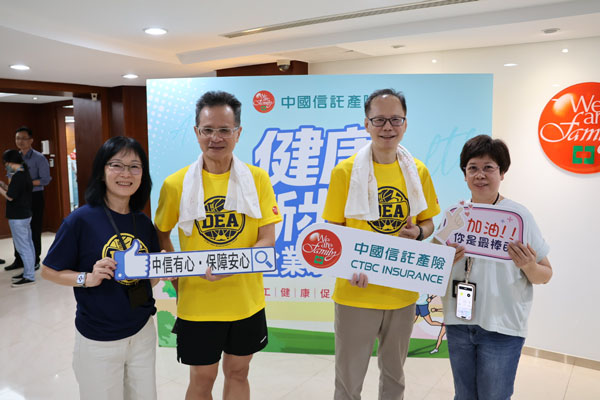 身著運動服和健走鞋、頸上掛著毛巾,許東敏董事長與陳正煌總經理一身勁裝共同鳴笛,透過線上直播率領中國信託產險全臺各地員工一起健走,今年健走活動自7月23日起連辦四場,每次健走4公里(約6千步),相當於每人可減少1公斤排碳量,期望聚沙成塔為地球永續盡一份心力。總經理陳正煌首場就走完9.68公里雙倍達標,他分享自己平時就有健走、打球的運動習慣,深刻體會規律運動的正能量和影響力,強調員工健康是企業最重要的資產,鼓勵大家多運動,有健康的團隊才能從容面對各項挑戰。
