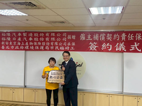 在「社會關懷、永續共好」的路上,自1998年開始在裕隆集團旗下的裕隆汽車製造股份有限公司與裕隆日產汽車股份有限公司共同捐贈費用,由新安東京海上產險承保「臺北市環保局雇主補償契約責任保險」,一路走來為市民臨時工投保雇主補償契約責任險,保障市民臨時工若發生意外時能即時獲得援助,避免家庭生計因龐大醫療費用陷入經濟困境,至今已持續27年不間斷,提供臺北市環保局市民臨時工因公身故者每位新臺幣100萬元保險金、非因公身故者40萬元保險金及住院醫療每日1,000元的保障,迄今有近4萬3千人次市民臨時工獲得保障,理賠人數包含13人不幸意外身故、3人意外殘疾及424人意外受傷,皆已順利獲得理賠與完善的援助。