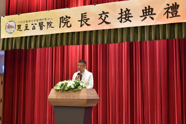 新任院長楊純豪致詞時表示,同樣感謝董事會與會長的信任,以及歷任前輩奠定堅實根基。他指出,未來將以打造「具備醫學中心品質的區域醫院」為願景,持續深化特色醫療與智慧醫療,提升整體醫療品質與研究能量。他指出,三鶯線通車與北大特區人口成長,將帶動更多就醫需求,本院將加速醫療服務升級與在地健康照護佈建。楊院長強調,人才是發展關鍵,將積極培育院內人力並拓展跨院、跨國合作資源,打造支持、信任與尊重的友善職場,發揮團隊最大效能。同時,他也強調醫院除醫病更應「醫心」,持續深耕社區、關懷弱勢、推展預防醫學與長照網絡,落實宗教醫院的社會責任。面對即將到來的醫院評鑑與深耕計畫審查,他表示將全力以赴,爭取補助與發展契機,展現恩主公醫院守護民眾健康的堅持與信念。