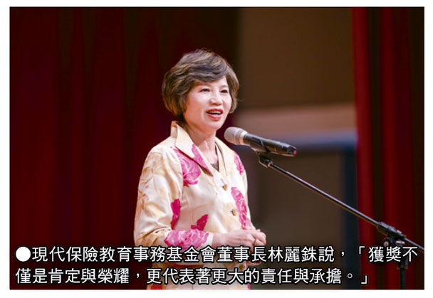 「我始終把保險視為一項能帶來安心的『福田』工作,值得所有從業人員引以為榮。」保險局局長王麗惠說,保險信望愛獎不僅是對從業人員的肯定,更是推動保險業持續精進的重要動力,她也特別感謝現代保險教育事務基金會,「長期以來,在保險教育領域持續深耕,推動大眾保險知識的普及,這是一項極具價值的紮根工程。」