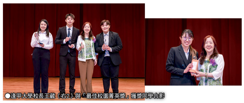 「最佳校園菁英獎」頒獎人逢甲大學校長王葳說,「能夠在今天這麼盛大的場合,為優秀學生頒獎,我感到非常高興,也期許得獎同學能持續精進,成為保險教育的模範典範。」她觀察,獲得校園菁英獎的同學,除了具備優異的學業與專業表現(含相關證照),也能對所學進行反思,最重要的是積極投入,對社會有所貢獻。