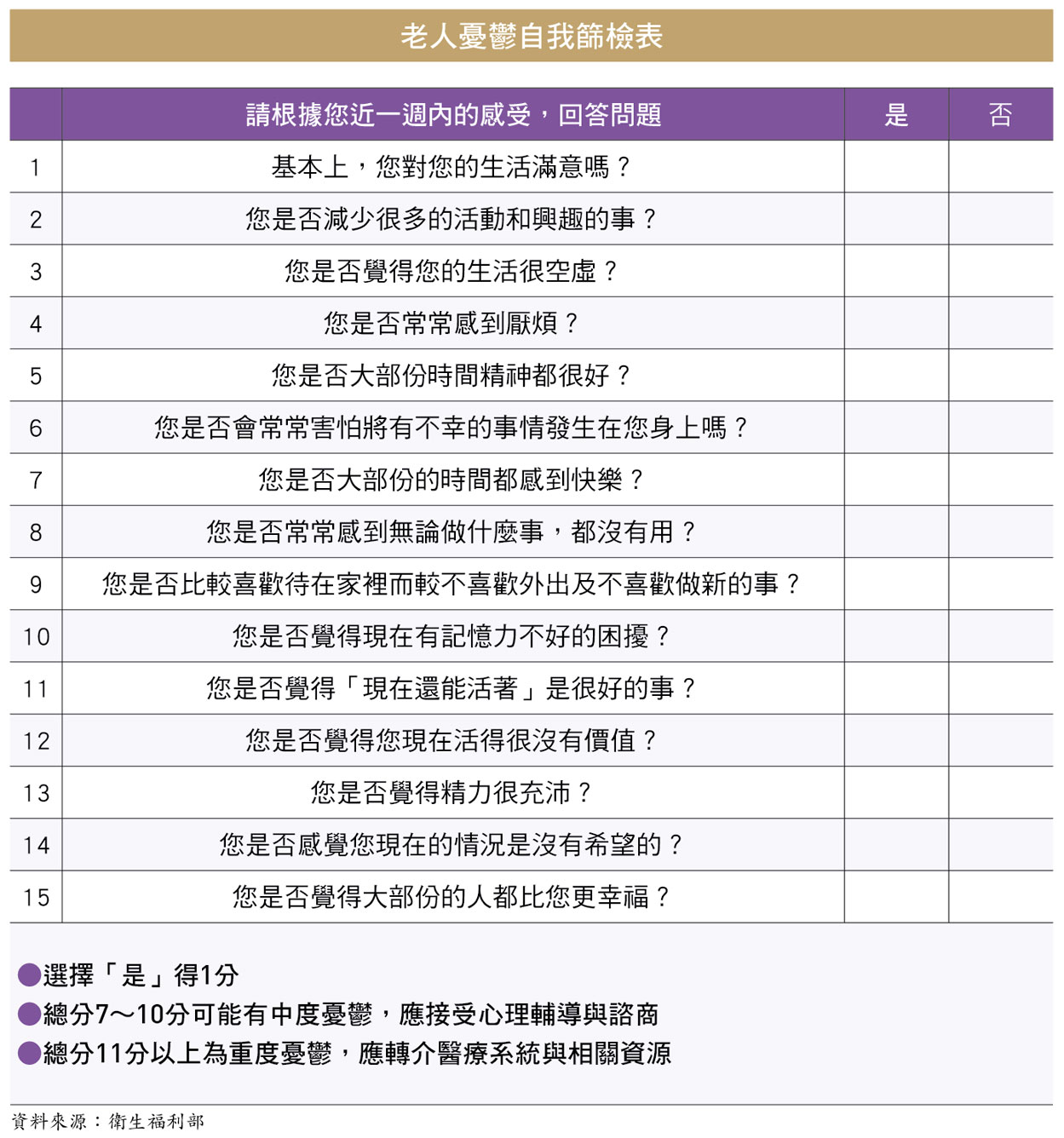 「我有憂鬱症嗎?」老人憂鬱自我篩檢
