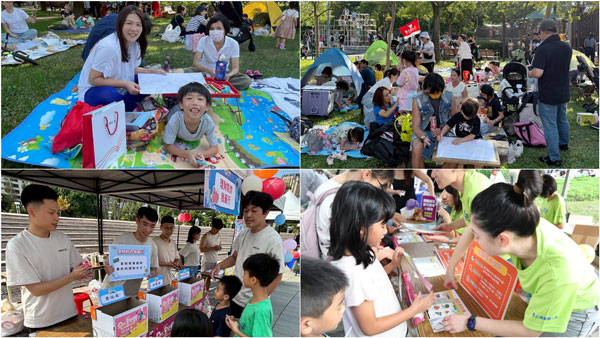 今年活動現場熱鬧非凡,除了小朋友專注作畫的身影外,還特別設置了六大兒童議題趣味闖關挑戰,從理財防詐、反霸凌、性別平等,到健康運動、食農教育與環保愛地球,每一關卡都藏有小知識,讓孩童在遊戲中邊玩邊學,不僅動腦也動手,完成闖關後還能獲得小禮物,每位孩子們臉上都洋溢著自信與成就的笑容。其中,「食農教育」關卡由三商餐飲協助規劃設計,透過趣味互動引導孩子認識食物健康飲食觀念;「環保愛地球」則與台灣玩具圖書館協會合作募集二手玩具,家長事先與孩子整理家中不再玩的玩具,將玩具帶到活動現場捐贈給有需要的人,透過整理玩具的過程培養孩子對環境保護的關注與實踐力。