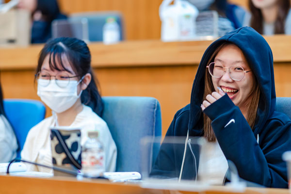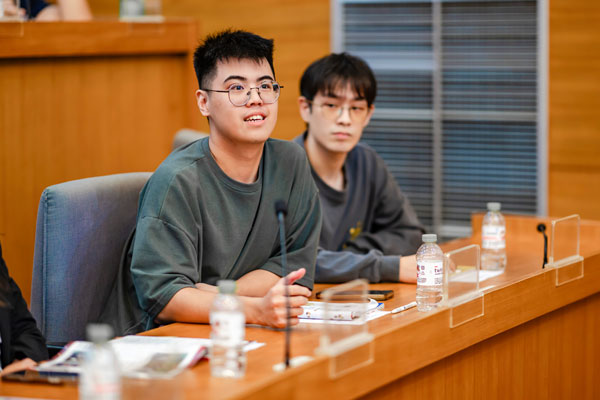 顏思齊以自身經驗為例,早期從車商服務到車險核保,加上後來負責半導體廠區相關理賠案件,都持續學習不同產業知識。他鼓勵年輕學子趁在校期間多培養跨域能力,並勇於接觸實習或求職機會。「只要好好學習讓自己產生價值,薪資自然會反映你的實力,」他也當場提供實習機會,表示在保險業工作,「薪水的薪與心靈的心」都還挺不錯的。
