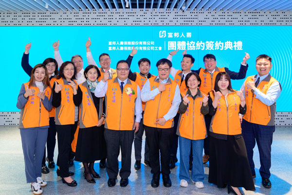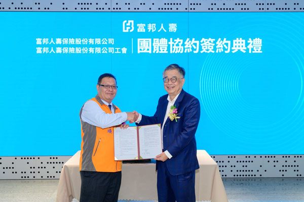 為持續推動展現尊重信任、和諧溝通、幸福友善精神的職場環境,富邦人壽與富邦人壽工會今(12)日舉行續簽團體協約儀式,由富邦人壽董事長林福星、富邦人壽工會理事長黃建順代表雙方簽訂,並獲行政院勞動部專門委員劉政彥、台北市勞動局副局長梁蒼淇、全國金融業工會聯合總會理事長鍾馥吉及秘書長韓仕賢、台北市產業總工會理事長邱奕淦等多位貴賓親臨見證,展現富邦人壽與工會的共識團結,同心齊力提升員工權益,再創勞資雙贏的新里程碑。