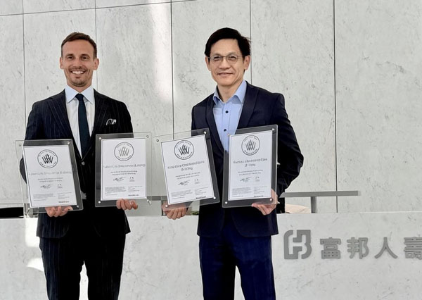 本次富邦人壽大樓與富邦遼寧大樓均取得 WiredScore白金級、SmartScore黃金級及台灣綠建築 EEWH黃金級認證,從規劃到營運,全面展現「智慧 × 永續 × 韌性 × 人本」的價值。未來,富邦將持續以科技、永續與環境為核心,打造健康、幸福的永續智慧新職場。