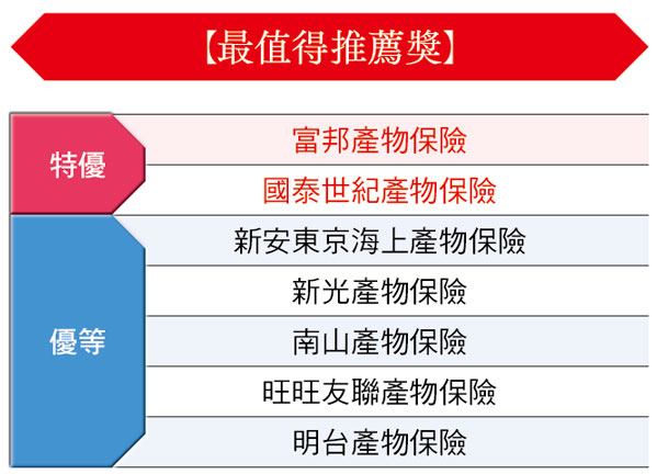 【保險品質獎】第24回最佳產險公司《得獎名單》
