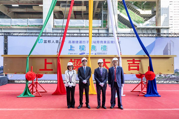 「富邦人壽高雄凹子底開發案」今(19)日舉行上樑典禮,富邦集團董事長蔡明忠、富邦人壽董事長林福星、富邦人壽總經理陳世岳,聯同高雄市市長陳其邁、高雄市議會議長康裕成等貴賓蒞臨,共同見證工程邁向新里程碑。富邦人壽感謝市府團隊的專業指導協助,以及所有工程合作夥伴的全力投入,上樑祈福儀式不僅象徵距離完工目標再邁進一大步,更具體展現富邦人壽開創正向未來、實現美好生活的企業承諾,為城市發展願景描繪開創性的藍圖。