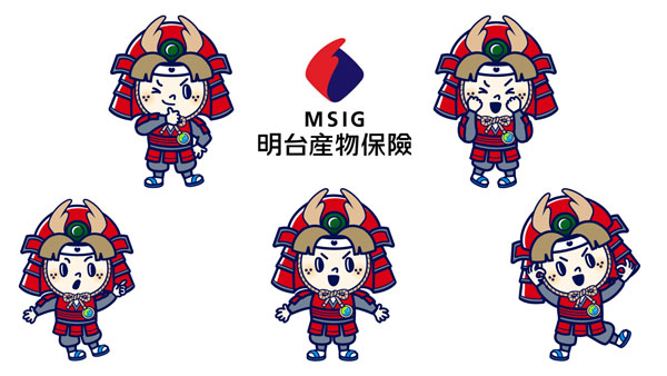 • 專業守護形象: 明太郎身穿武士鎧甲與頭盔,搭配明台Logo色系的紅、藍戰袍,象徵專業可靠的保險守護者。