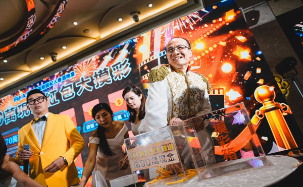圖一: 晚宴主持人馬力歐(左一)與張志成總經理(右一)現場準備開心抽出幸運兒