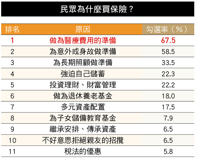 【保險購買行為調查】近7成民眾買保險是為了醫療費