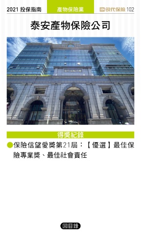 2021 ҳڭܸی ପيڭᎈุ 102 इτପيڭᎈʮ̡ ᆤߏ ● 保險信望愛獎第21屆:【優選】最佳保 險專業獎、最佳社會責任 回目錄