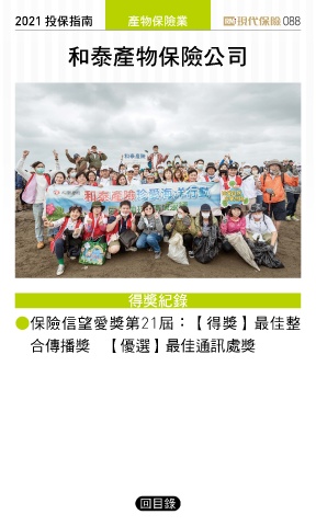 2021 ҳڭܸی ପيڭᎈุ 088 ձइପيڭᎈʮ̡ ᆤߏ ● 保險信望愛獎第21屆:【得獎】最佳整 合傳播獎 【優選】最佳通訊處獎 回目錄