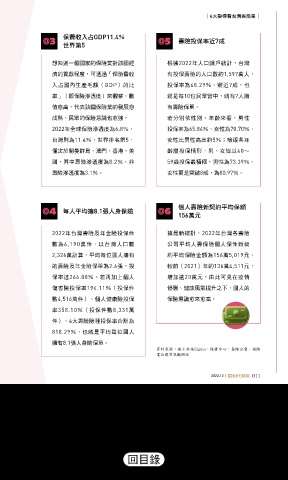 “6大指標看台灣保險業„ 03 保費收入占GDP11.4% 05 壽險投保率近7成