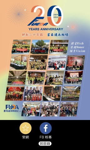 讓夥伴在富易達成為自己事業的老 仁的實戰力,開設百萬菁英俱樂部 走過精采二十年,富易達將整合