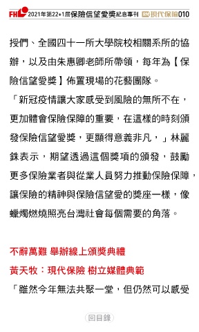 發保險信望愛獎,更顯得意義非凡,」林麗