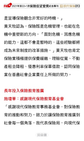 「感謝現代保險教育事務基金會,對保險教