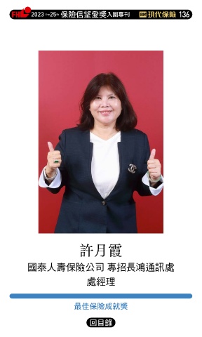 2023 25 ڭᎈڦૐฌᆤ ɝఖਖ਼̊ 136 th the 許月霞 國泰人壽保險公司 專招長鴻通訊處 處經理 ௰Գڭᎈϓఱᆤ Ϋͦ