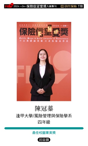 2024 26 ڭᎈڦૐฌᆤ ɝఖਖ਼̊ 118 th the 陳冠蓁 逢甲大學/風險管理與保險學系 四年級 ௰Գࣧവߵᆤ Ϋͦ