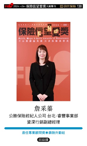 2024 26 ڭᎈڦૐฌᆤ ɝఖਖ਼̊ 130 th the 詹采蓁 公勝保險經紀人公司 台北-睿豐事業部 資深行銷副總經理 ௰Գਖ਼ุᚥਪᆤ◉ྪᎈ̮ාଡ଼ Ϋͦ