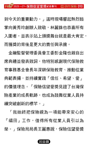 榮。」保險局局長王麗惠說,保險信望愛獎
