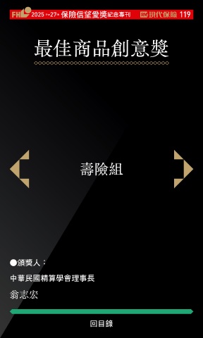 2025 27 ڭᎈڦૐฌᆤ ߏׂਖ਼̊ 119 the th 最佳商品創意獎 壽險組 µᆤɛj ʕശ͏ၚၑኪึଣԫڗ 翁志宏 Ϋͦ
